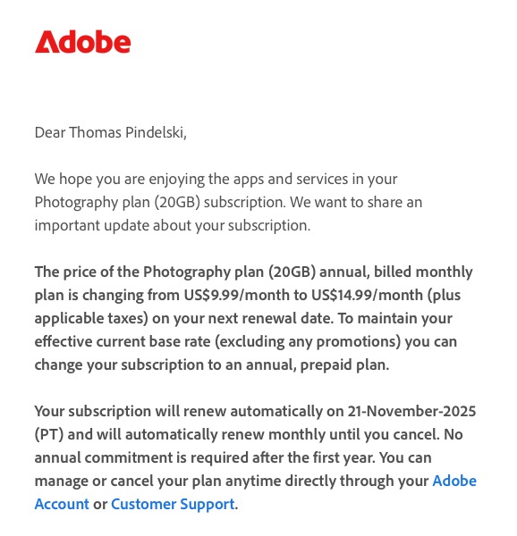 Meanwhile I have signed up for one year with the crooks at Adobe at the existing $10 monthly rate, and earnestly hope this is the last time I ever pay them: