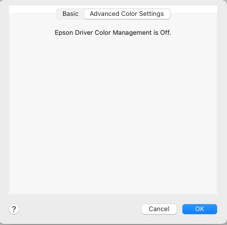 You can check that LR is using this profile in the Print module by going to Printer->Printer Options->Color Matching, where you will see two options, neither selectable (both are greyed out) with ColorSync being the selected option, thus: