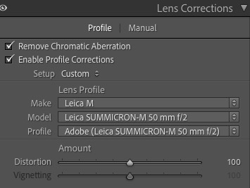 Lens correction in Lightroom: