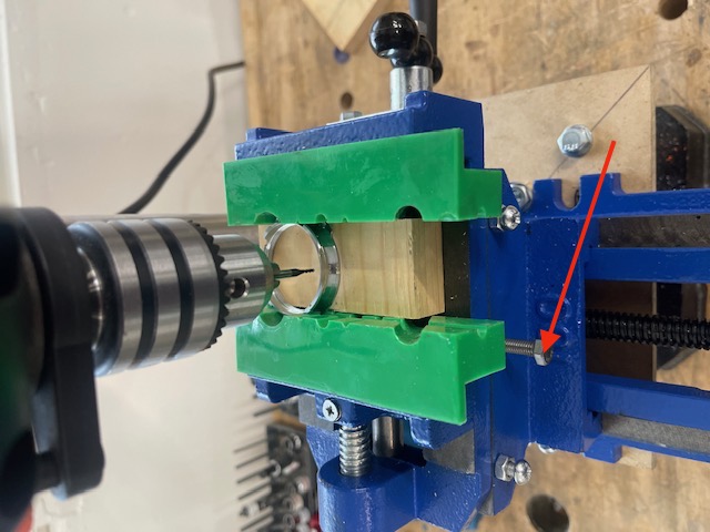 How deep to drill? Forget the depth stops on the drill press – they are an exercise in frustration. Just machine enough that you see brass showing through the chrome plating on the flange. You need only a very fine cut. If the lens’s mount is aluminum mill just enough that you can discern the pit.