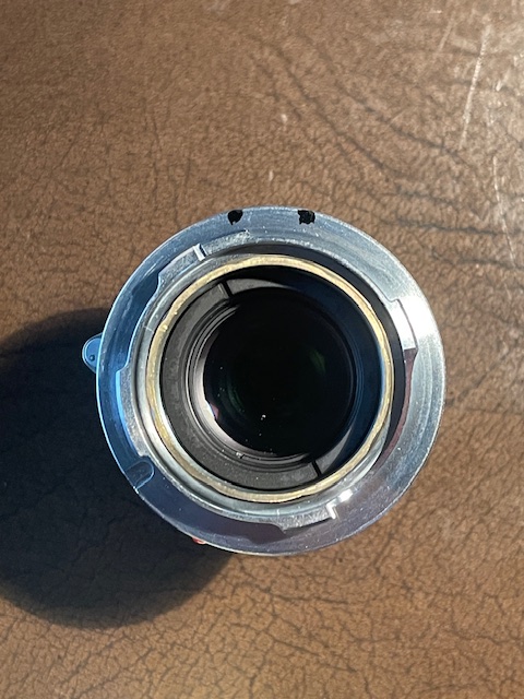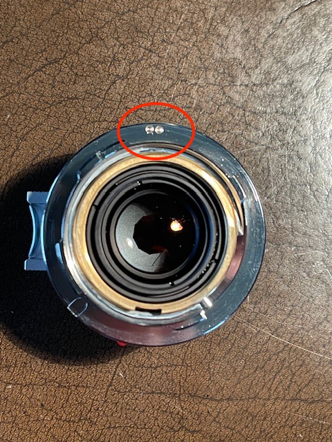 Do the pits have to be oblong, like on Leica lenses? No. This is good news as machining an oblong pit is obviously more work/higher risk than simply machining a circular one. But there is a right and a wrong way to place the ink dot which will be used as the machining location if only a circular pit is being cut. Some experimentation disclosed that, with my M10 body, if the ink is toward the inside of the flange, nearest to the glass in the lens, it will not correctly register the lens automatically. If, on the other hand, the ink is toward the outside edge of the flange, furthest from the glass, it works fine.